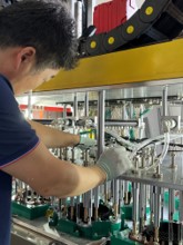 Technicians assemble linear guides, cylinders, servo motors and mechanical arms